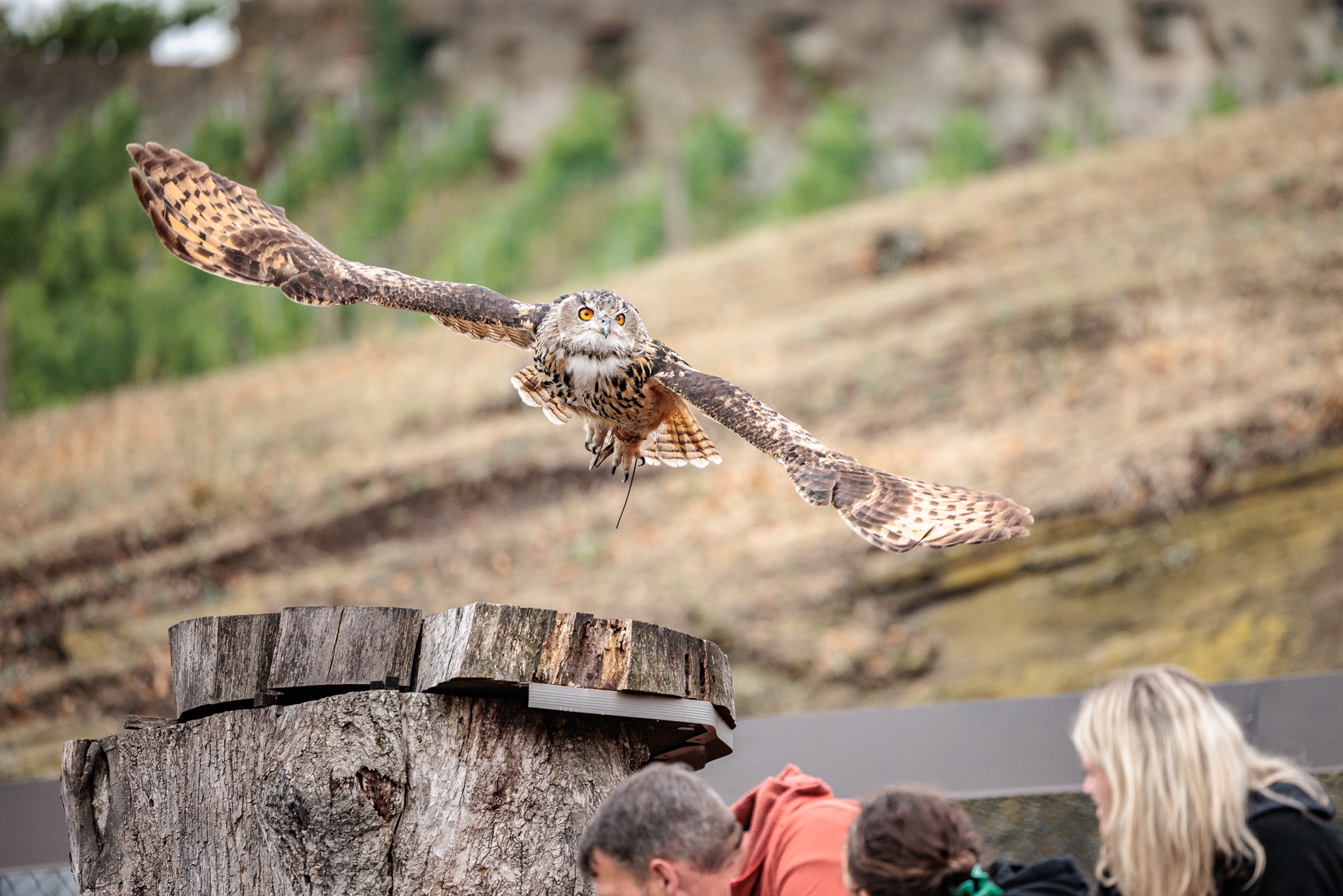 Auch die Gruppe durfte in einem exklusiven Teil zwischen den Vorführungen den Tieren - allen voran dem Wüstenpussard Günther in Action und der Schneeeule Hedwig posierend - ganz nah kommen.