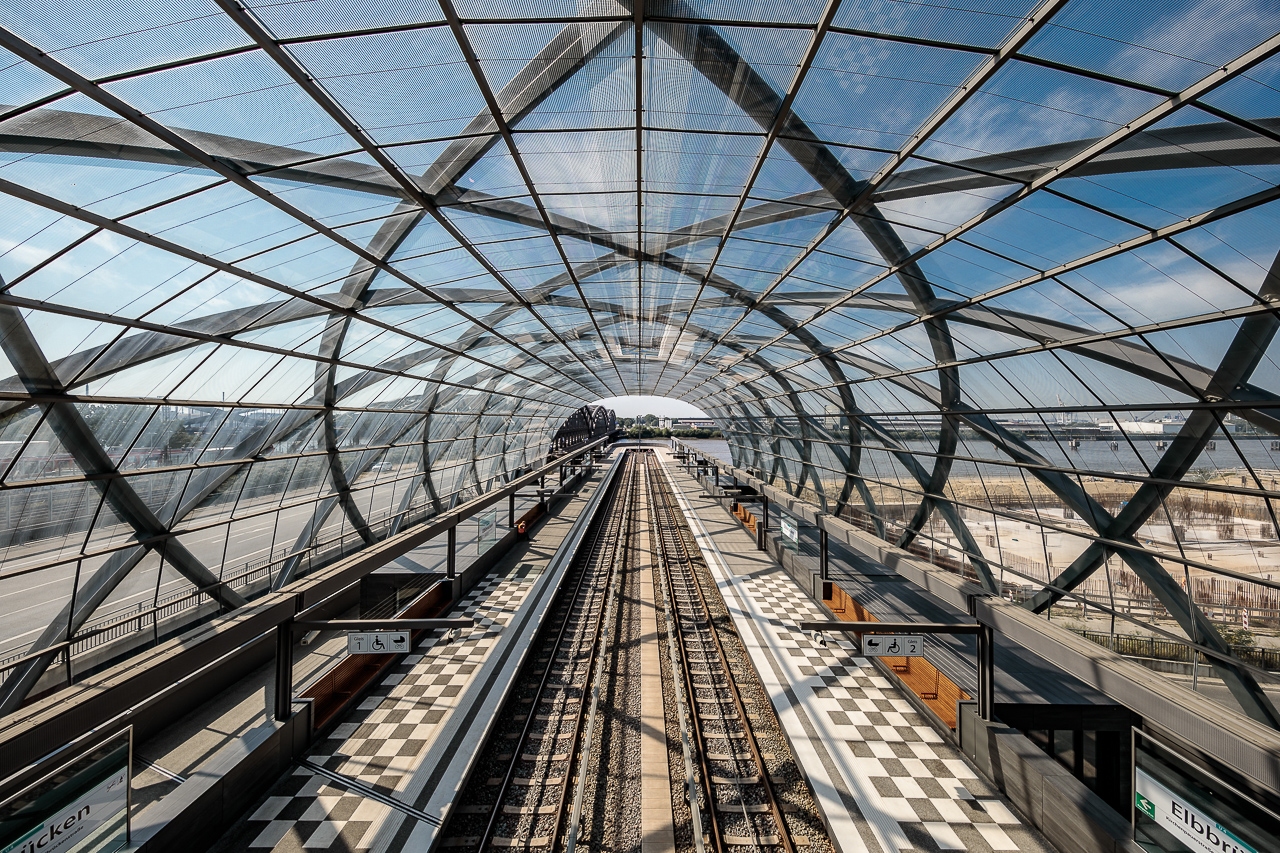 Symmetrie in den neuen U-Bahn Stationen in Hamburg. Aufgenommen 08/2020.