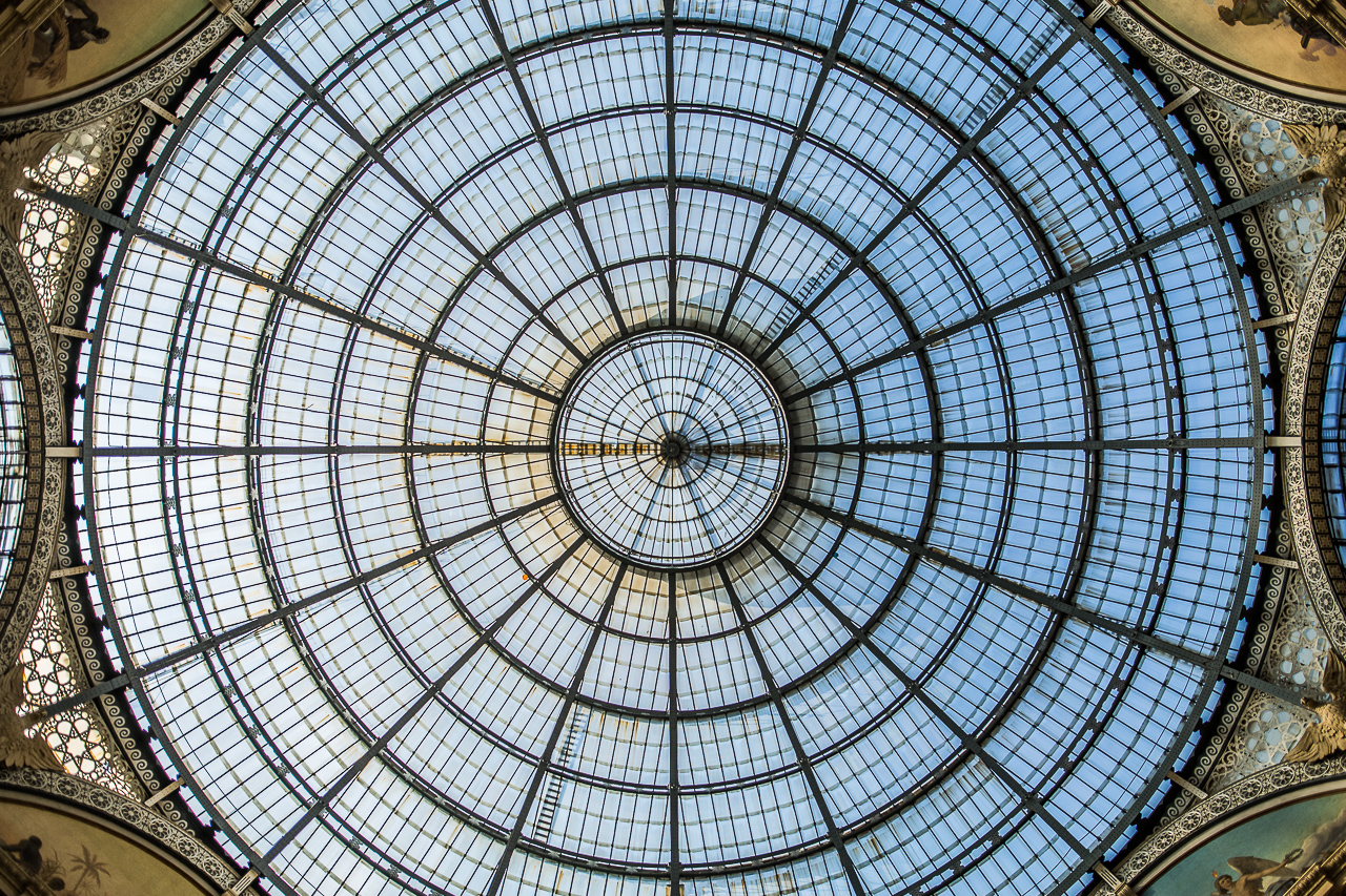Symmetrisches Foto des Dachs der Galleria Vittorio Emanuele II in Mailand.