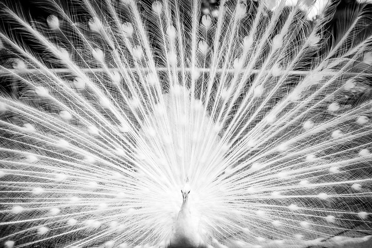 Ein weißer Pfau im Tiergarten Schönbrunn