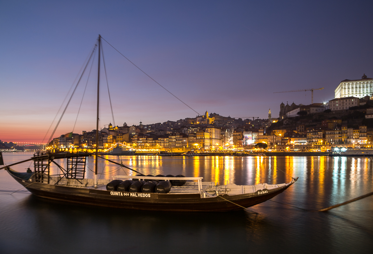 Porto in der Blauen Stunde - III Die wunderschöne Stadt Porto in der Blauen Stunde. Die Boote haben in vergangenen Zeiten den berühmten Portwein aus dem flussaufwärts gelegenen Douro-Tal in die Stadt gebracht.