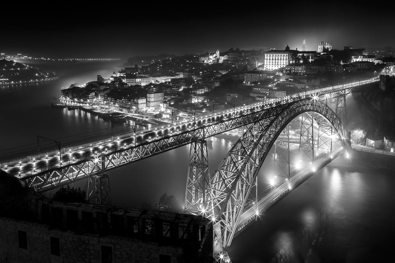 Porto bei Nacht - I (Schwarz-Weiß-Version)